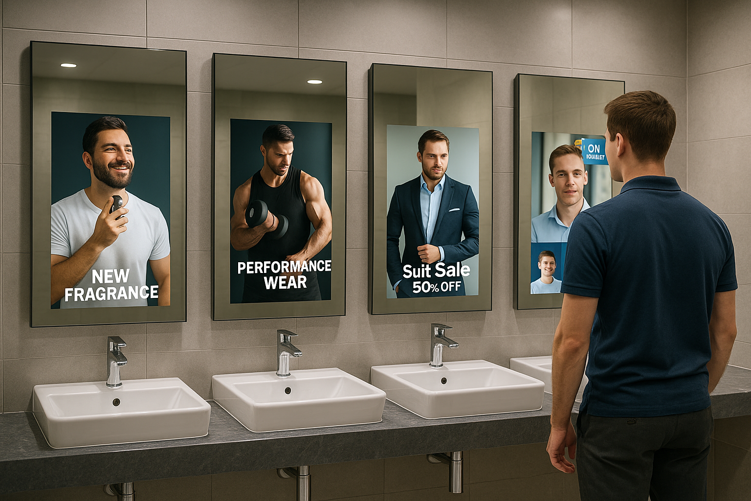 Integramos anuncios en espejos y superficies reflectivas para alcanzar a tu audiencia en momentos de atención plena, sin fricción visual, con formatos elegantes y medibles.
